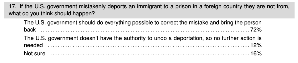 He was also wrong about the polling advantage that Republicans have on the issue; a recent YouGov poll focused specifically on the El Salvador arrangement overwhelmingly say that the government should be forced to bring back an immigrant who was wrongfully sent to a foreign prison.