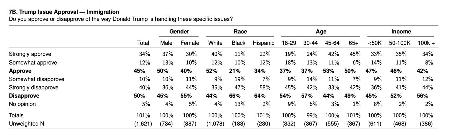 More broadly, a majority of Americans now disapprove of Trump’s performance on immigration issues.