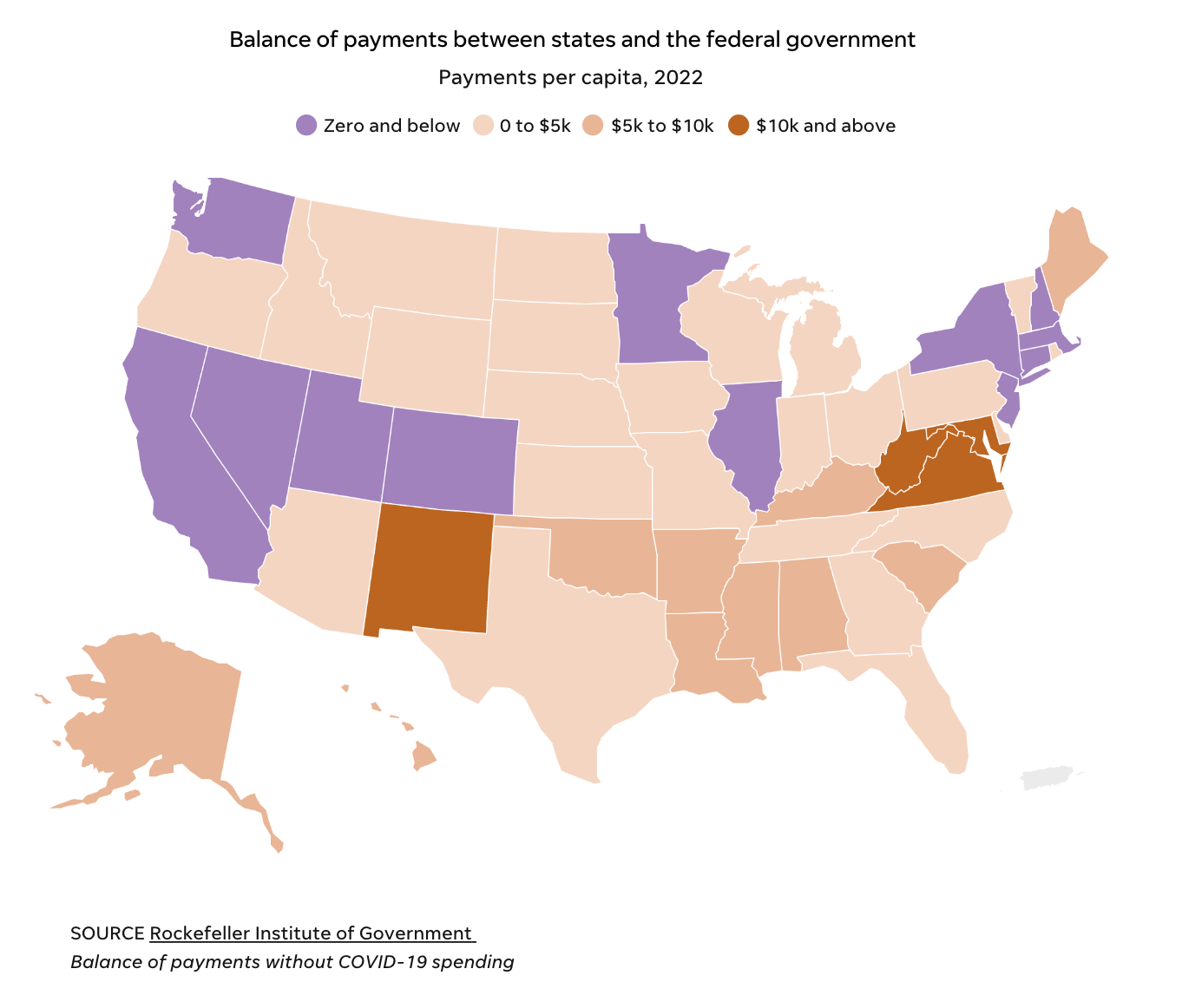 New York is one of around a dozen states that typically sends more money in taxes to the federal government than it receives back in federal funding; even during the pandemic, when the feds swamped states with money, the ratio was nearly one-to-one.