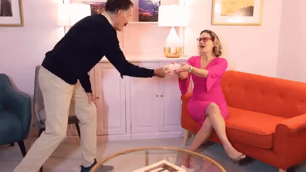 Now, to be fair, it’s not totally off the mark. Kyrsten Sinema is playing a character named Rebecca, who tries to tank her own team and loves hobnobbing with elites across Europe.