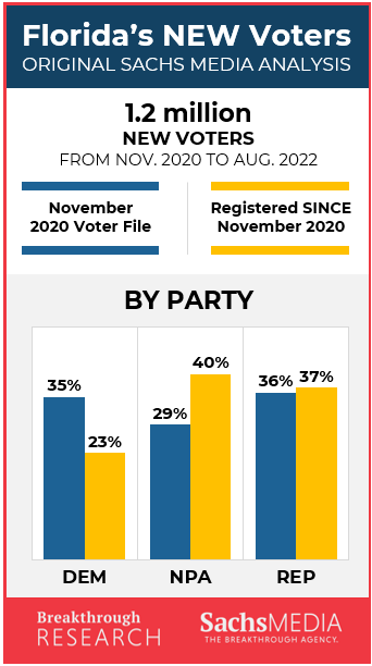 The 2022 midterm elections were brutal for Florida Democrats, as their top-of-ticket candidates lost by 15 points amid depressed turnout from voters that did not flip to Republicans.