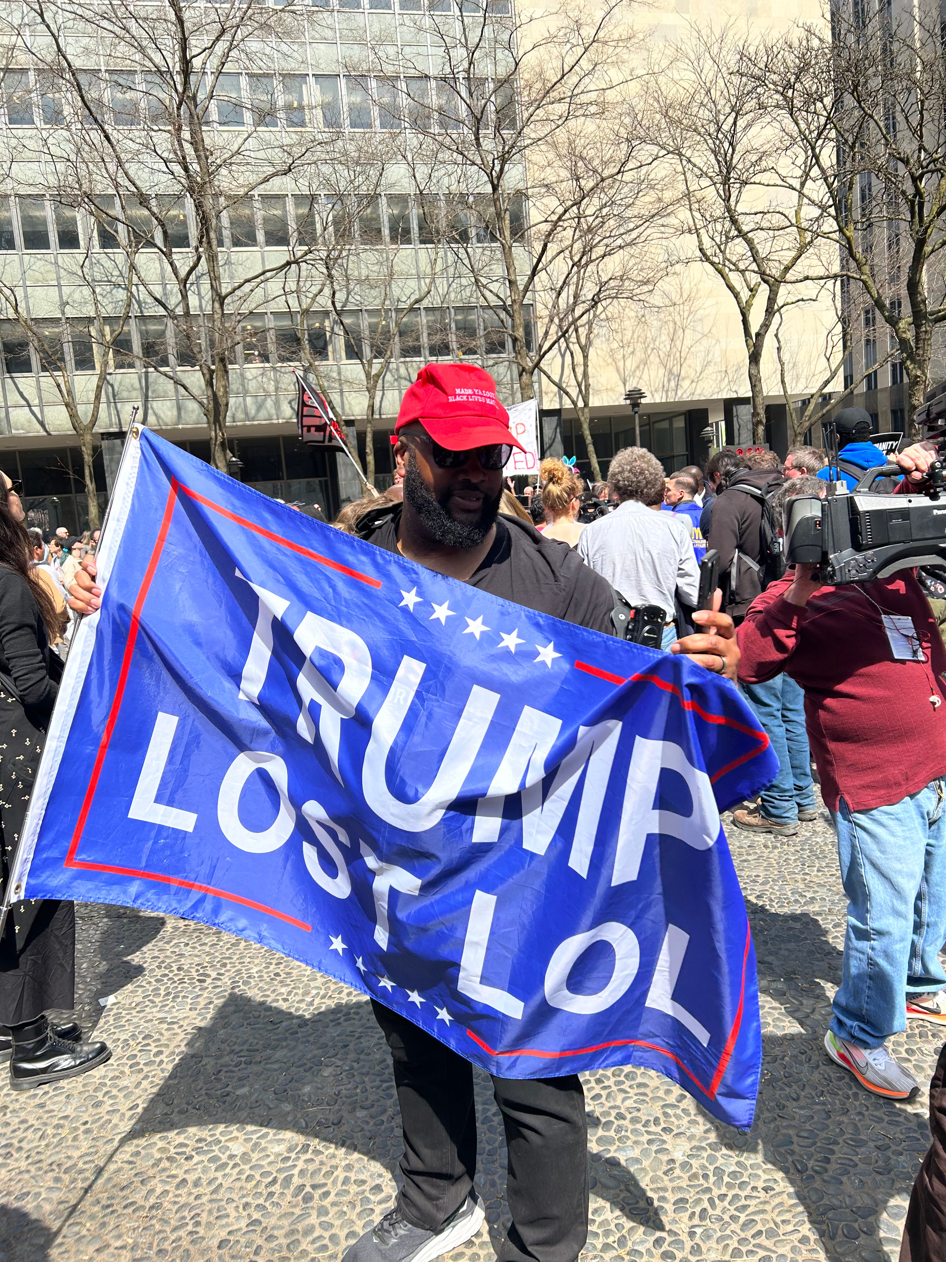 I spent my lunch break today outside the Manhattan Criminal Court, where I wandered in and around the vast collection of chanting protestors and straight-faced reporters who had gathered there in anticipation of Donald Trump’s arraignment.