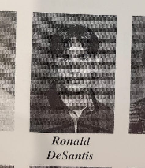 Let’s begin with a promise: If you make it all the way through today’s newsletter, you’ll be treated to an unsettling and inexplicably humiliating photo of Ron DeSantis in high school. No cheating!