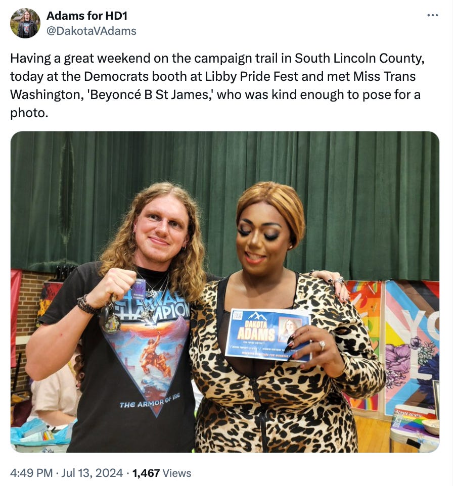 Not even four years later, Adams will be at the DNC in Chicago this week as a delegate from Montana and a candidate for state legislature. It’s one of the most unlikely left turns in recent American political history, done not out of ambition but instead a sense of personal accountability: Adams is running in a deep red district where no other Democrat bothered to even try to get on the ballot.