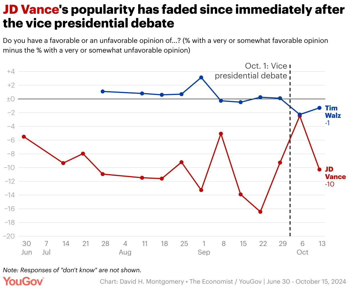 In other polling news, a new survey from YouGov finds that people really, really hate JD Vance and there’s nothing he can do about it: