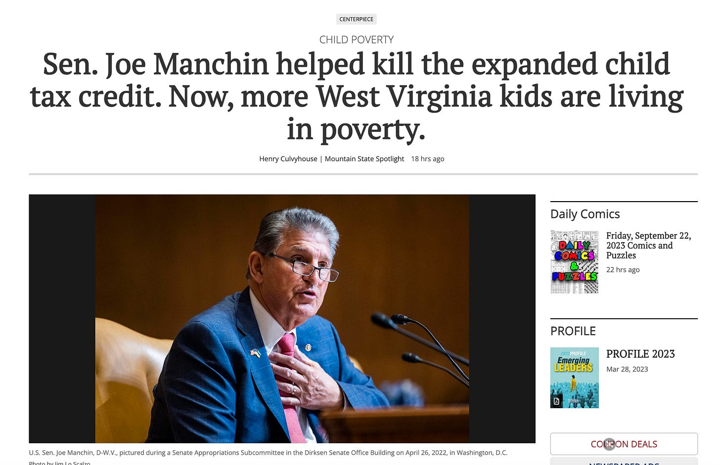 Here’s a headline from a local West Virginia newspaper from just a day ago: