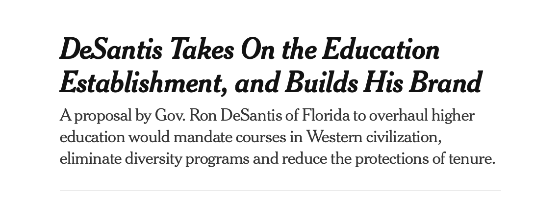In tonight’s newsletter, our Florida education correspondent brings us the latest from the front lines of DeSantis’s war on public education and decency, and we look at just how pathetic the response to it has become. Why are we doing this? Because major national outlets just don’t seem to mind what’s happening.