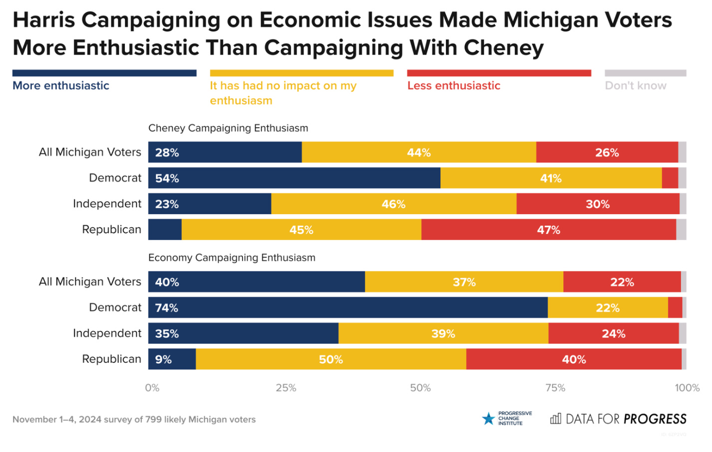 A slim majority of Democratic voters were into Cheney, but far more partisans were ready to be fired up by the economic populism that never really happened.