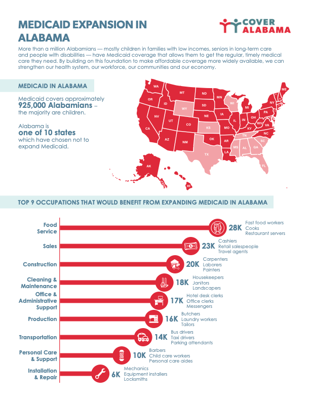 Cover Alabama is a coalition of over 80 organizations across the Yellowhammer state, from nonprofits and churches to unions and hospitals, that have come together to press the state’s Republican leadership to acquiesce to finally expanding the program. It’s an uphill battle, but as she told Progress Report earlier this month, momentum is slowly beginning to build.