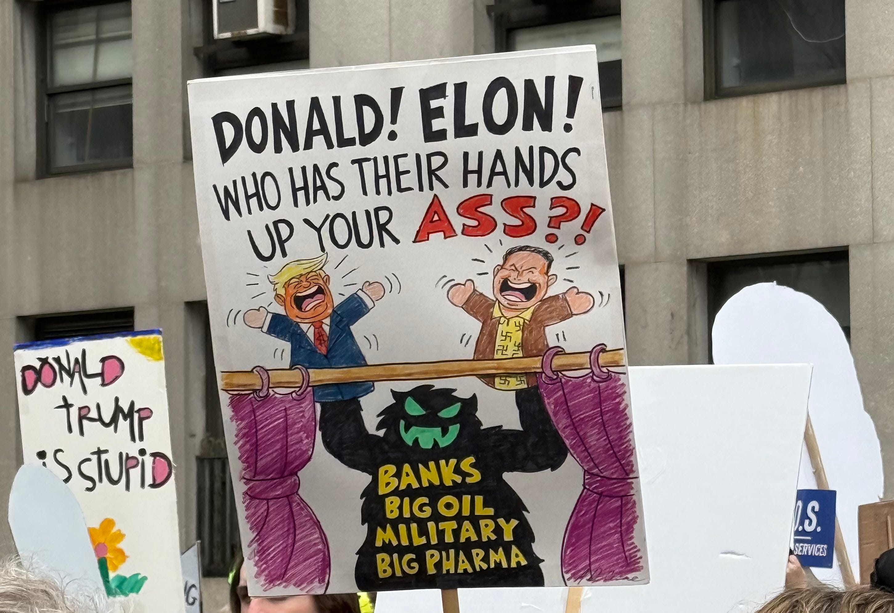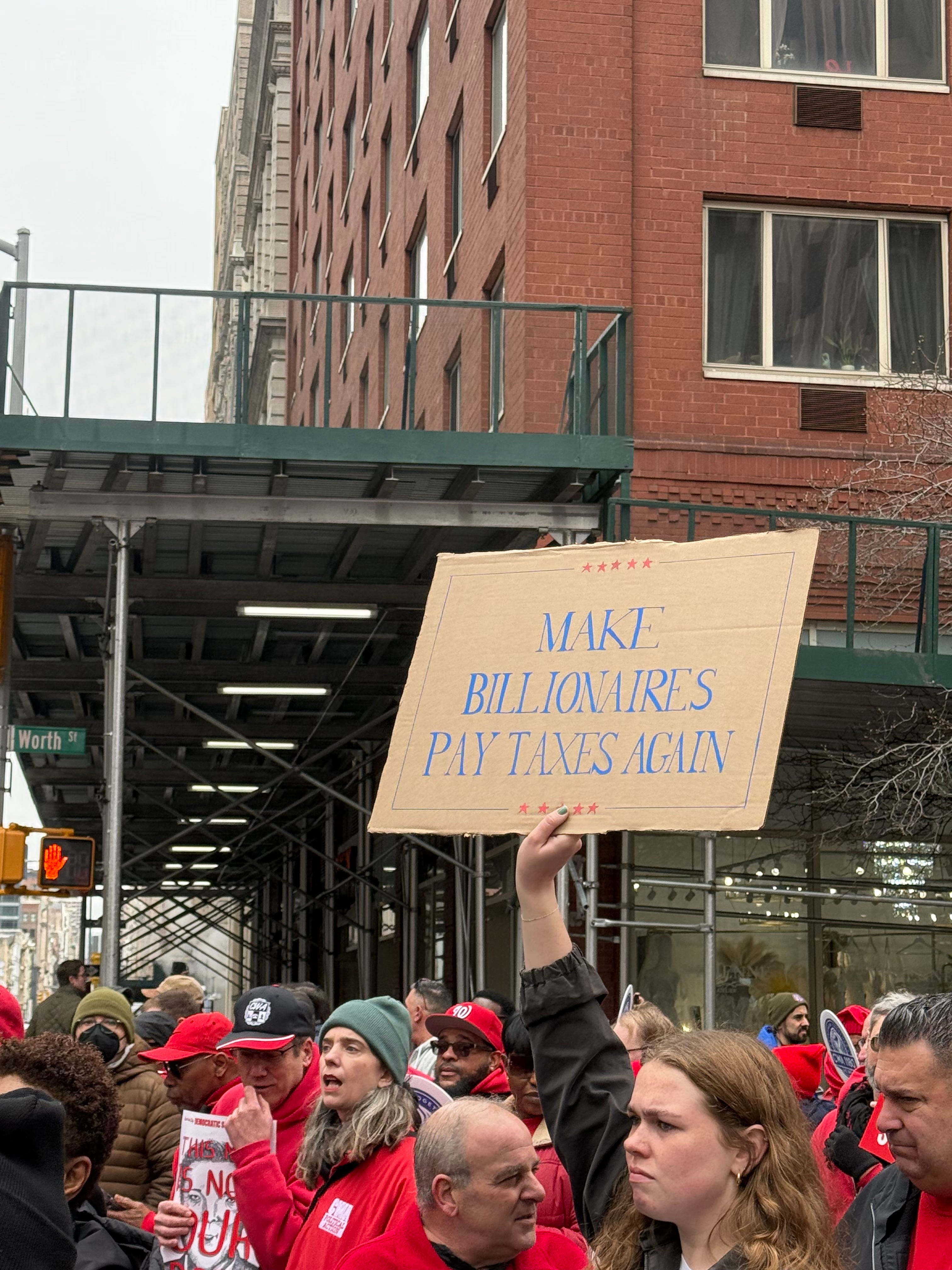 The plaza was the meeting point for a protest against Donald Trump, Elon Musk, and the enablers helping them in their mission to destroy the federal government. Chuck Schumer was at the top of that list, a late edition who became a leading focus of protestors’ ire after the hometown senator engineered the Democratic capitulation to the Republican government spending bill.