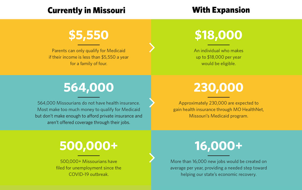 Missouri’s traditional Medicaid program is unconscionably stingy. It bars all single, able-bodied adults from obtaining government health coverage, no matter how little money they make, and renders public insurance almost as unobtainable for families, cutting off access to families of three that take home more than 18% of the federal poverty line, or just over $5000 per year.