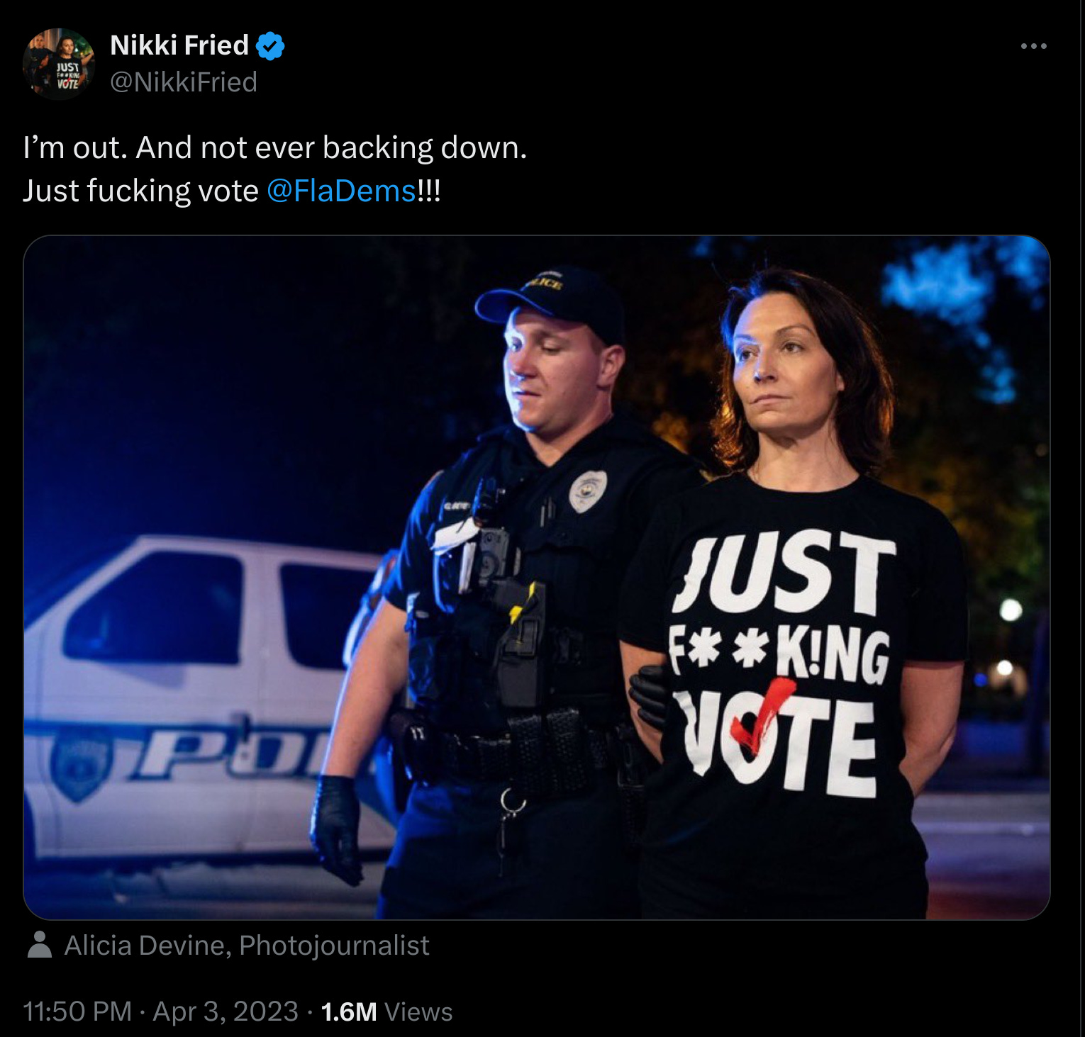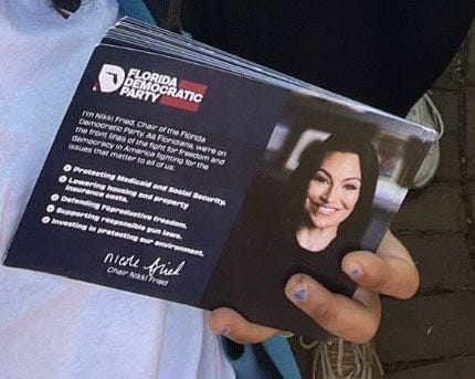 A friend who is active in Florida politics suggested to me that Fried has turned the state party into her own personal exploratory campaign ahead of another run for governor in 2026, which both makes perfect sense and frankly beggars belief.