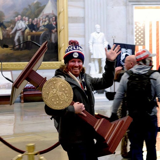 And now, terrorists stormed the Capitol building, enabled by police who did little to stop them.