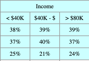 Looking at the cross-tabs of the poll, Osborn is taking 18% of conservative voters, while Fischer earns just 11% of liberal voters. He’s also thumping her when it comes to self-identified moderate voters, 49% to 23%. Just as importantly, Osborn is holding his own with voters across the economic spectrum. The three rows below are Fischer, Osborn, and undecided, in that order: