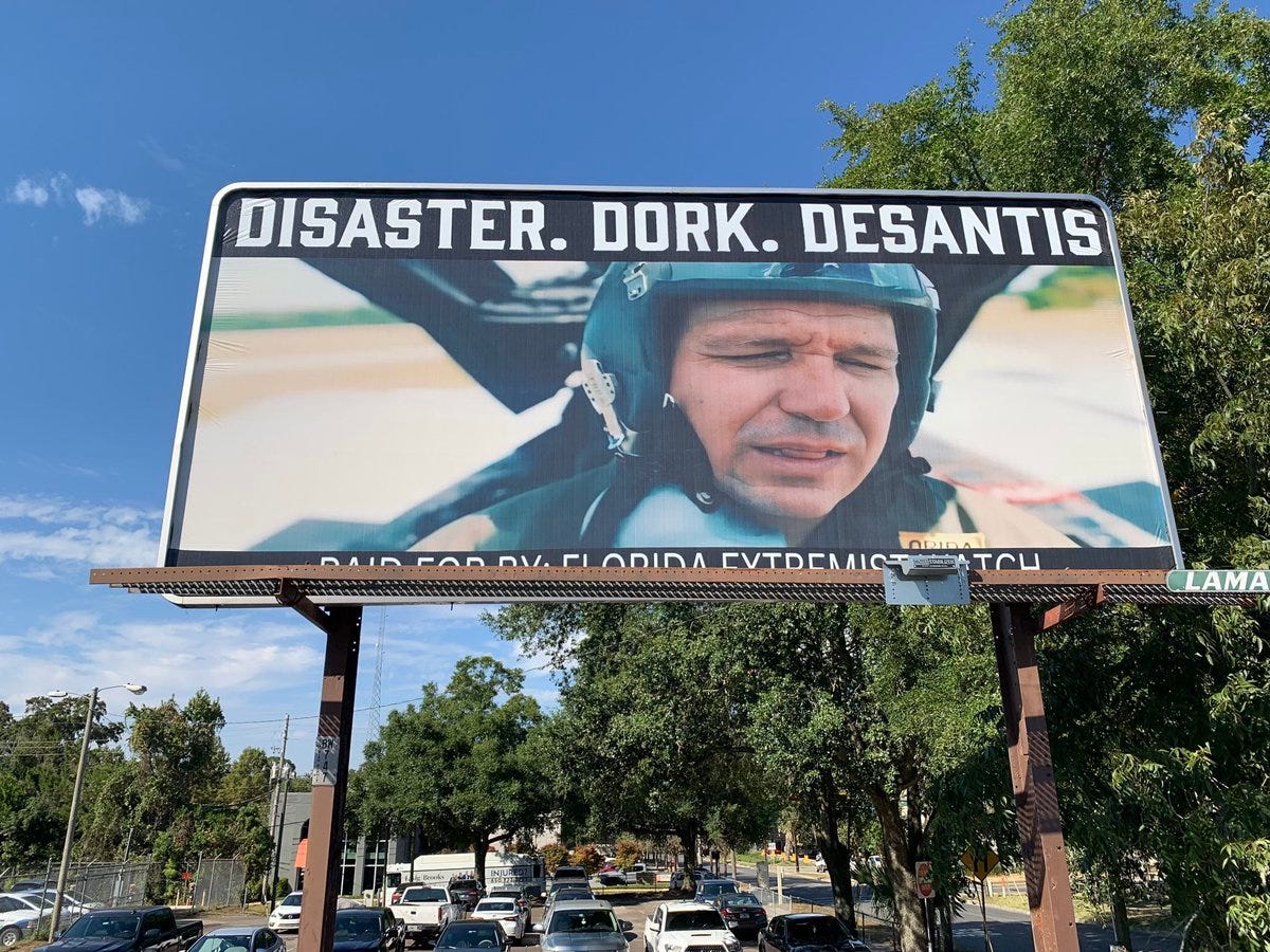 The billboard, placed just blocks from the Governor’s mansion, went viral on Twitter, and plenty of locals took photos of it and posted them online. It helped us to establish the sense that maybe DeSantis wasn’t so cool after all, a perception he gave a little bit of juice days later with those ridiculous white boots he wore while surveying hurricane damage.