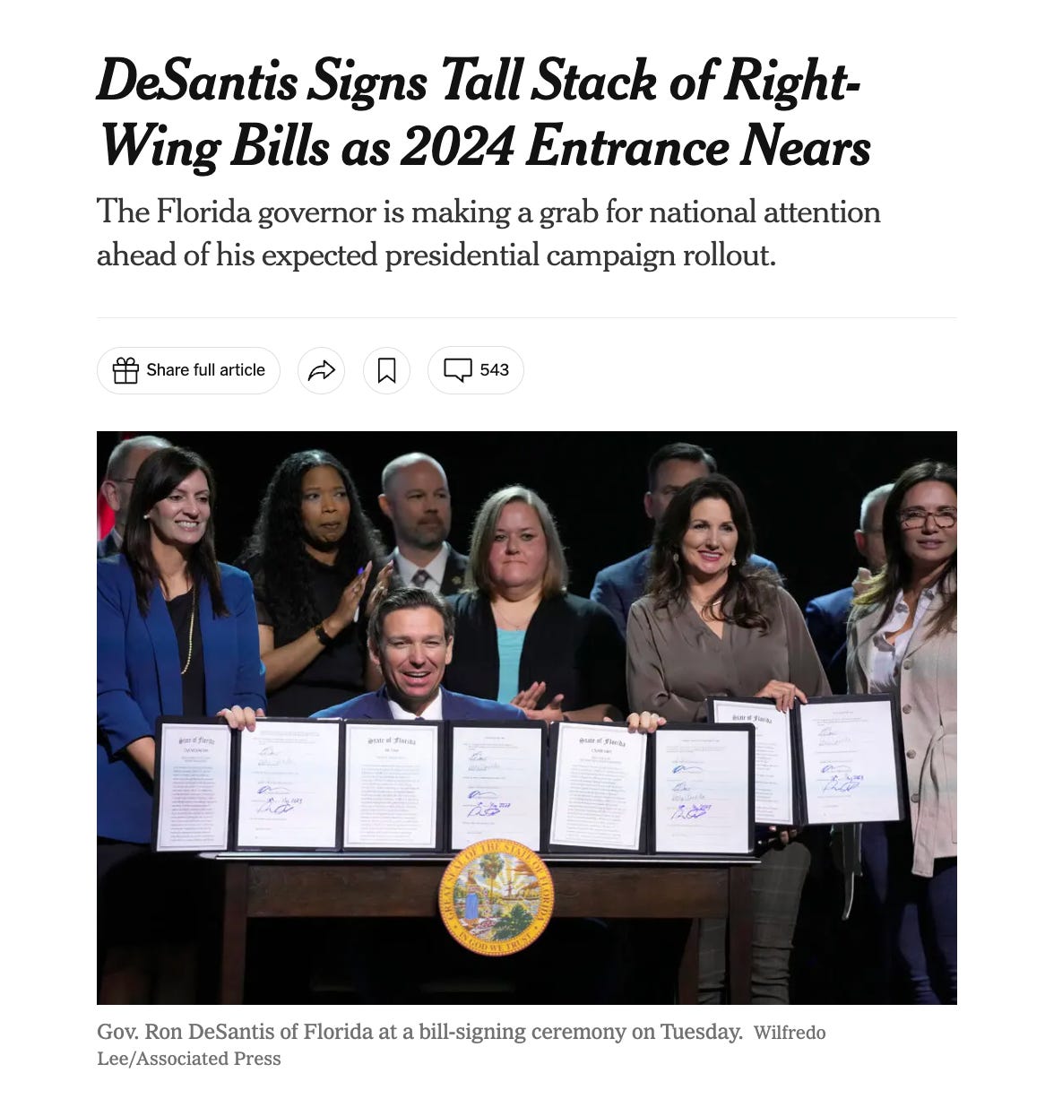 When DeSantis’s relentless attacks on queer children, pregnant women, and Black voters, and immigrant workers were described as appeals to the GOP’s far-right, it lent them the legitimacy of rational choices. There’s no reason why potential electoral motivations should change the moral assessment of someone who cuts kids off from needed health care or allows people to carry unlicensed concealed weapons, but focusing in on how that person is doing in the polls is a way of maintaining false objectivity.