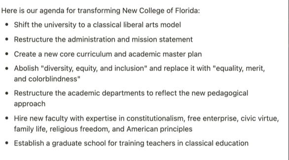 “Unfortunately, like so many colleges and universities in America, this institution has been completely captured by a political ideology that puts trendy, truth-relative concepts above learning," another DeSantis administration said.