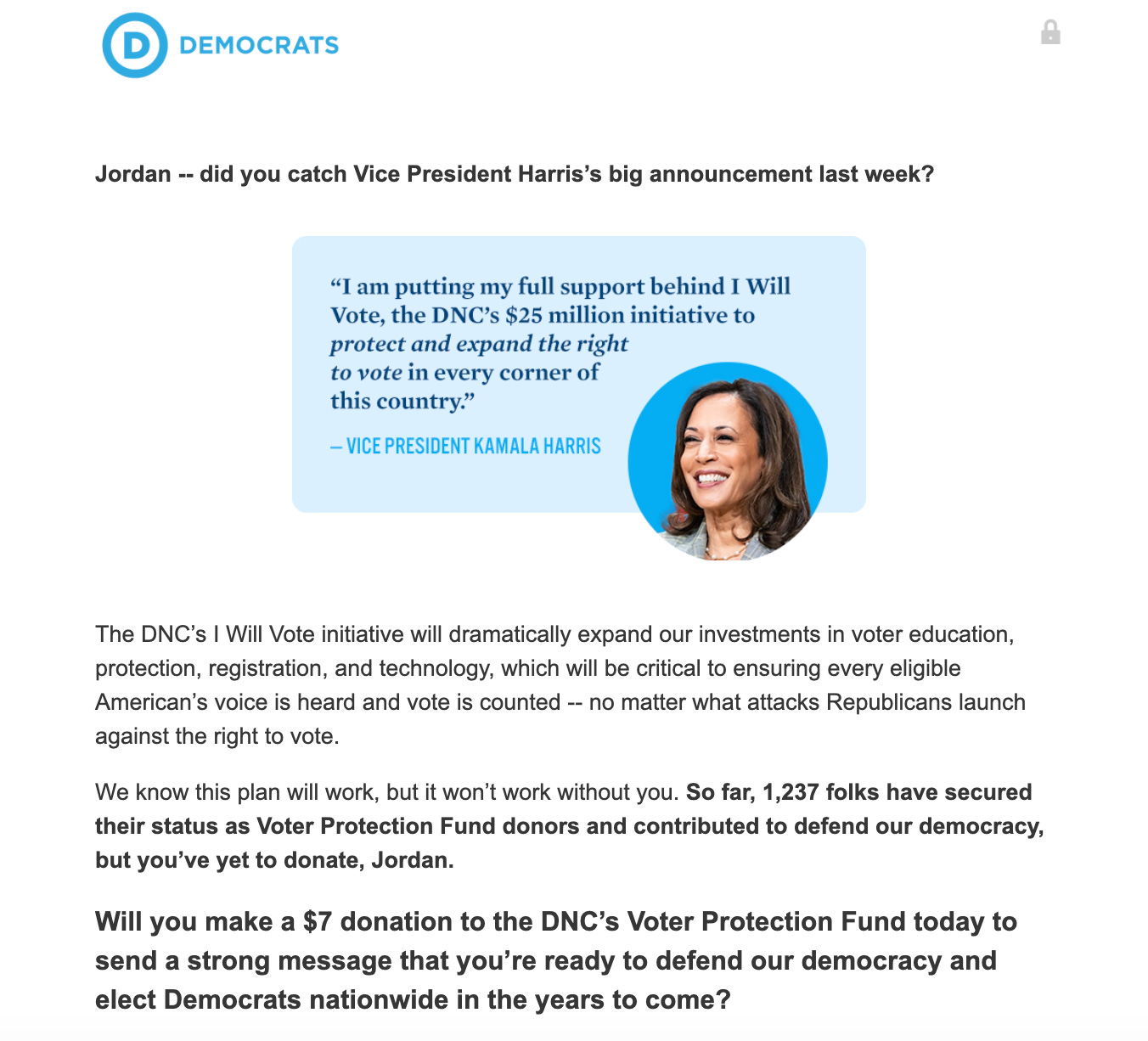 If that doesn’t scream “cynically using the assault on democracy to raise money” to you, here’s an email sent by the DNC this morning: