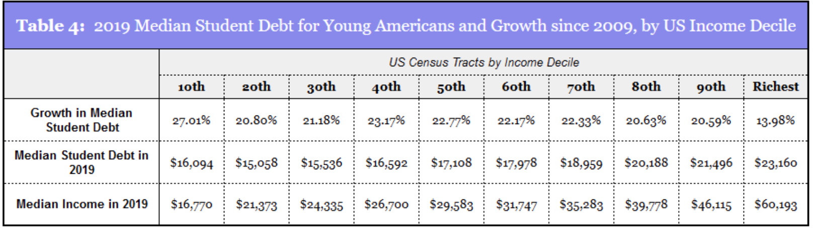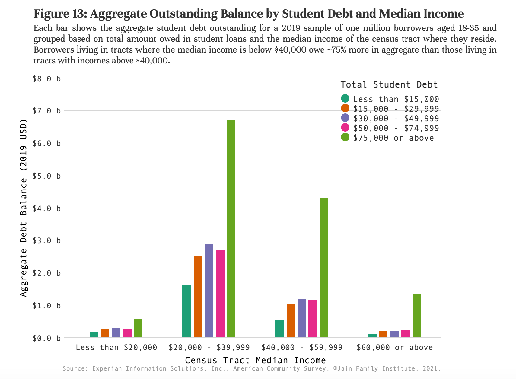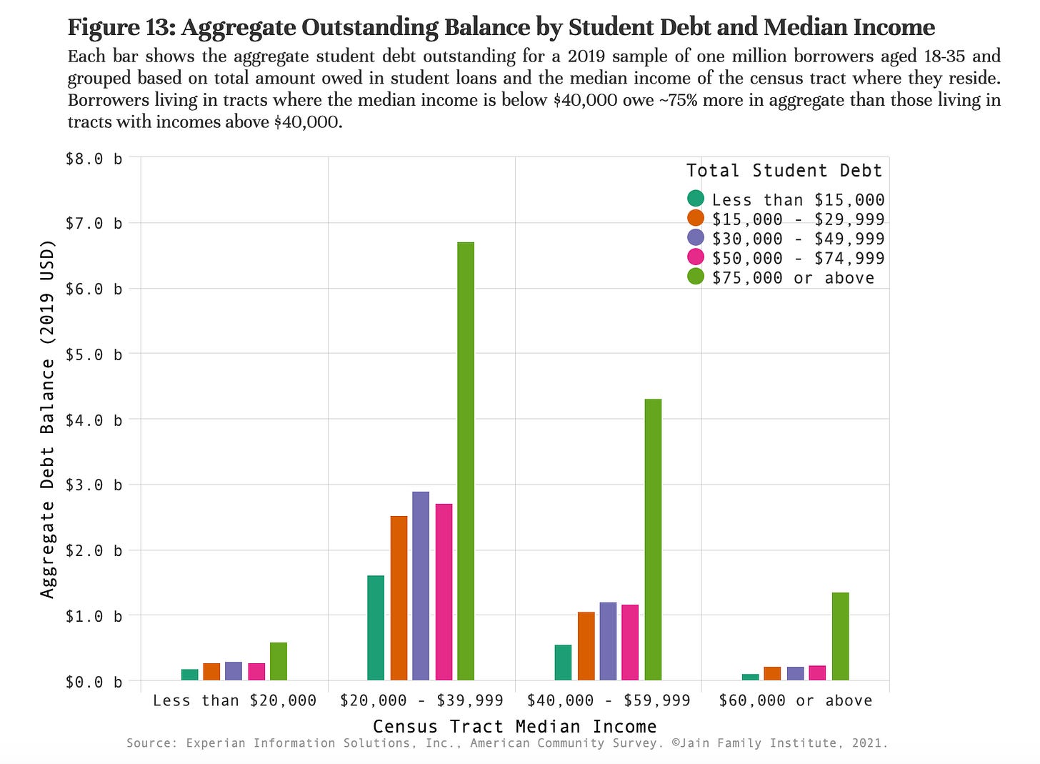 Translation: Family wealth is a huge factor in determining whether someone takes out student debt, how much they take out, and how long it takes them to pay it back. In a 2019 report, Steinbaum found that