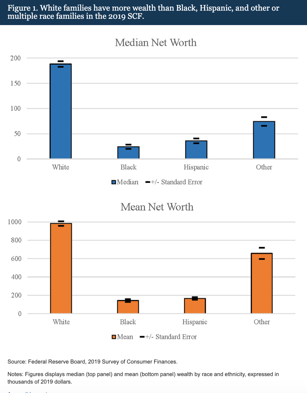 Simply put, in the United States, the average white family is far wealthier than the average minority family. As a direct result, student debt is far more burdensome to people of color, which in turn exacerbates the racial wealth gap.