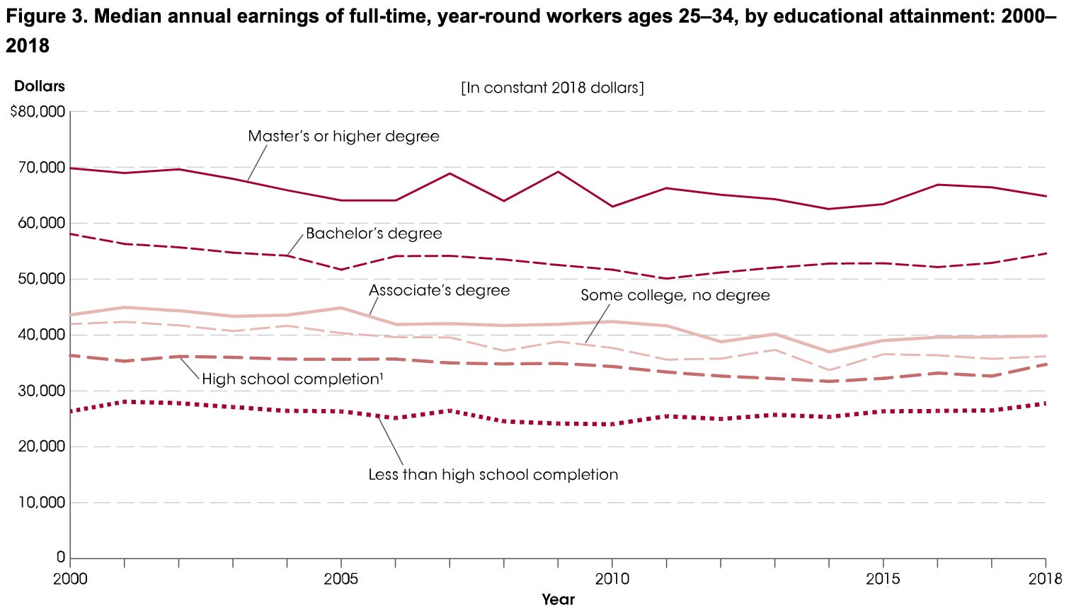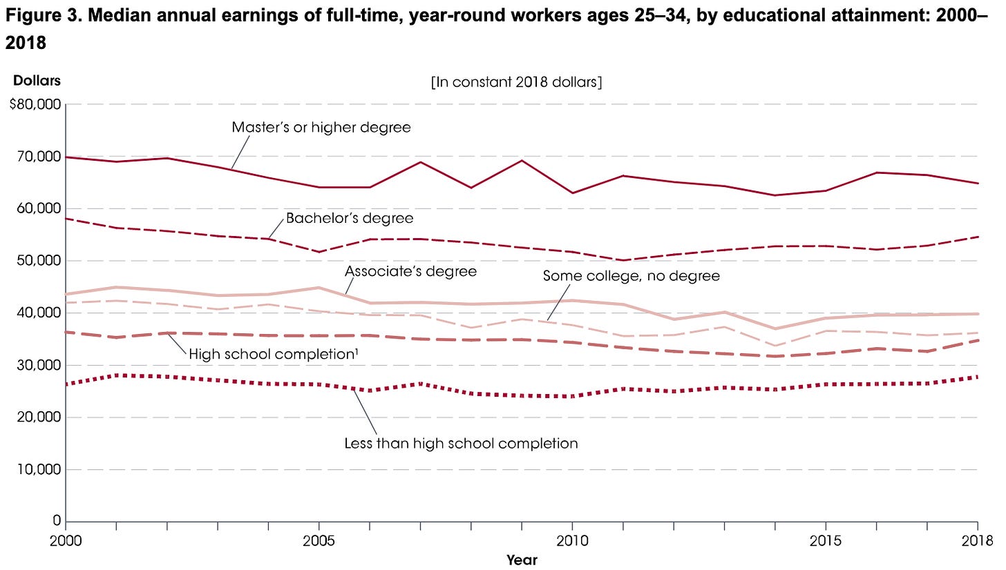 Bachelor’s degree declined from $58,200 to $54,700 (-6%).