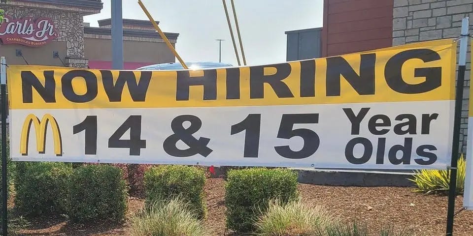 At the same time, we're seeing legislative efforts to increase the use of child labor to create slack in the labor market.