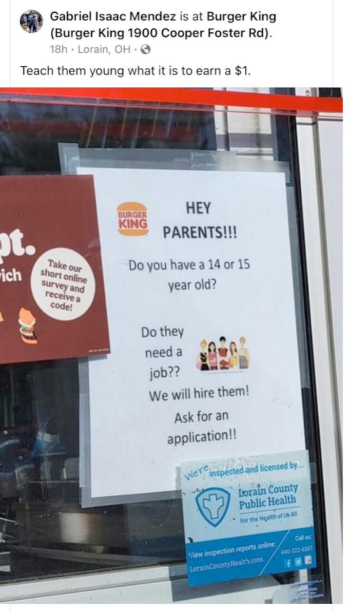 This is deeply troubling as students return to the classroom. Last year, Pennsylvania teenager Darcy Leight published an op-ed arguing that the staffing issues were forcing teens to work more and longer hours even during the academic year. An excerpt: