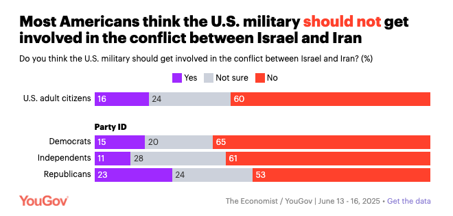 The Washington Post’s recent poll had 25% of respondents in support of a military operation against Iran and 40% absolutely against it, even though 70% of voters surveyed felt that Iran was at least a somewhat serious threat.