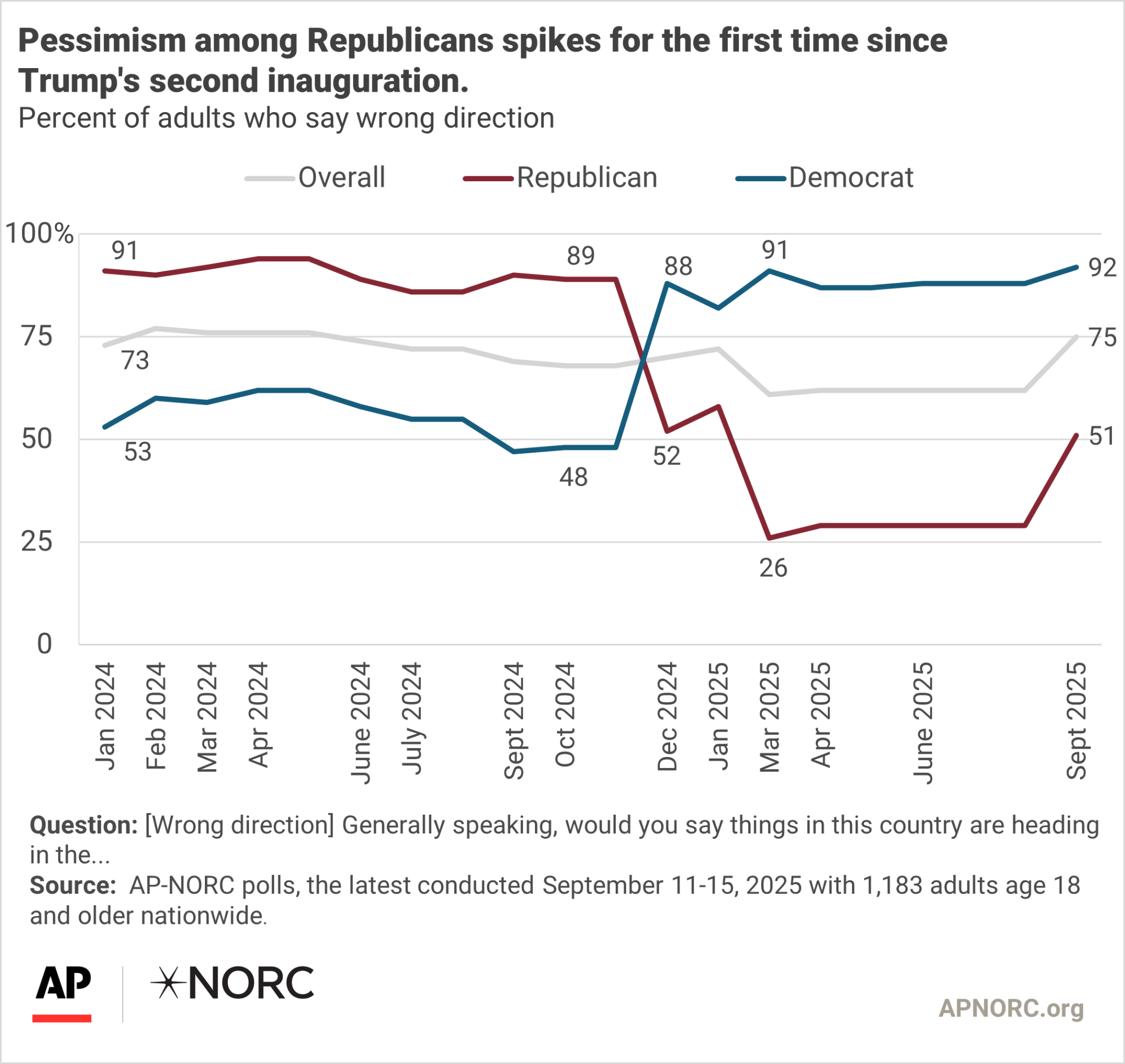 With such across-the-board disapproval for the administration’s sociopathic agenda, it’s little surprise that Americans — including Republicans — feel so deeply negative about the direction of the country, as measured in the Associated Press’s latest poll.