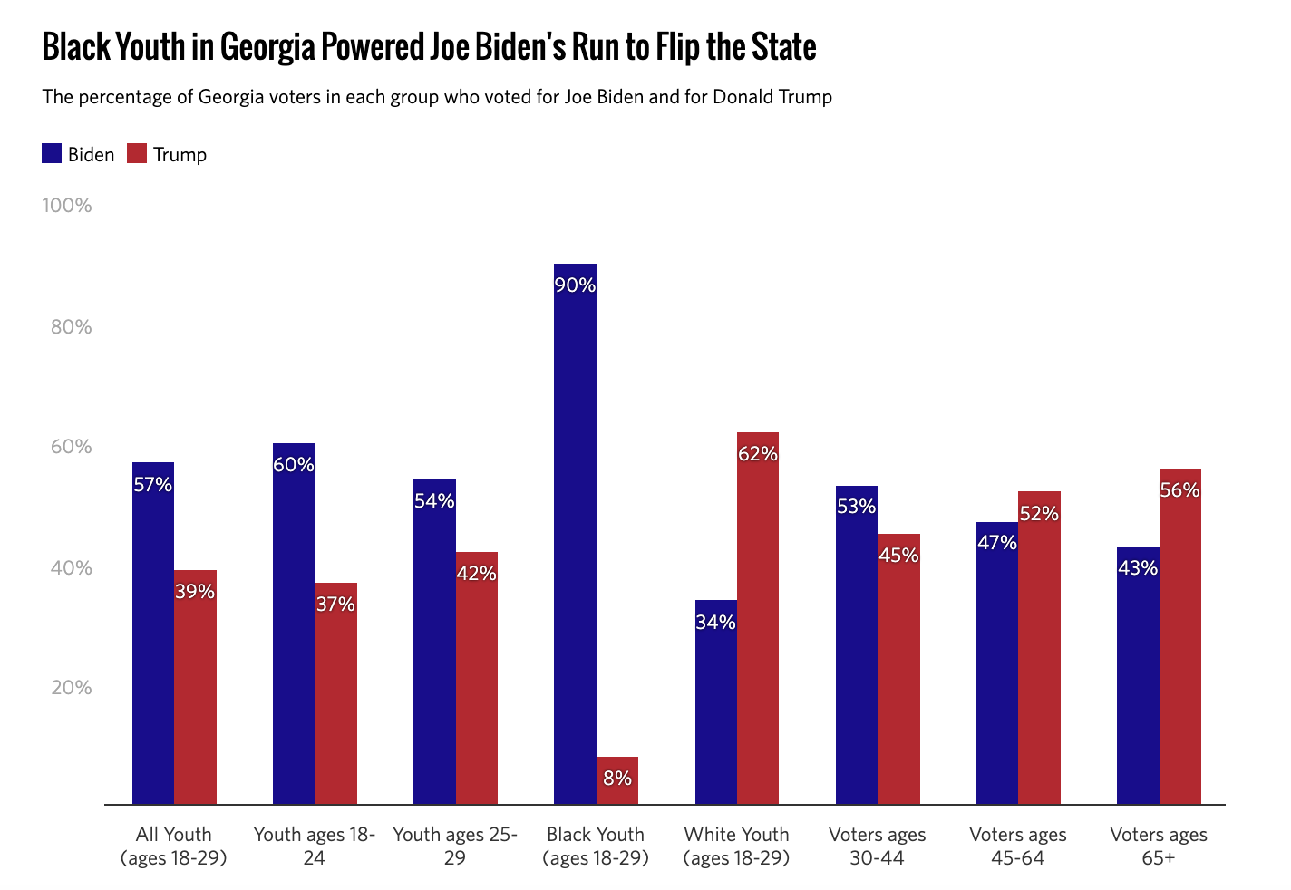 On the bright side, Democrats did benefit from a record-level youth turnout. I think the existential threat to their future was more of a motivating factor than any love for Joe Biden, but either way, the numbers are remarkable. Look at what happened in Georgia: