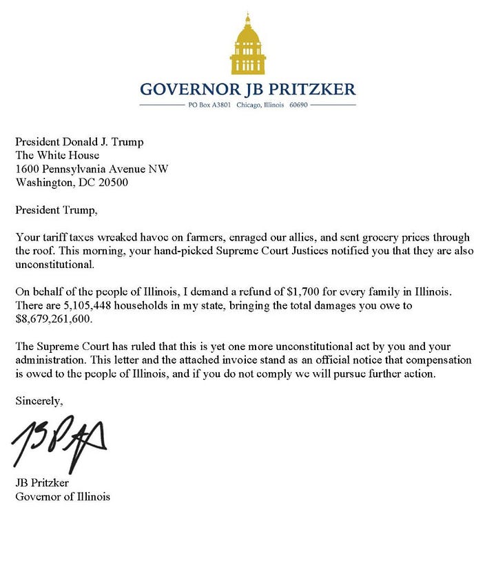 Winner: Illinois Gov. JB Pritzker, who got a lot of press for needling Trump after his big loss in the Supreme Court’s tariff decision.